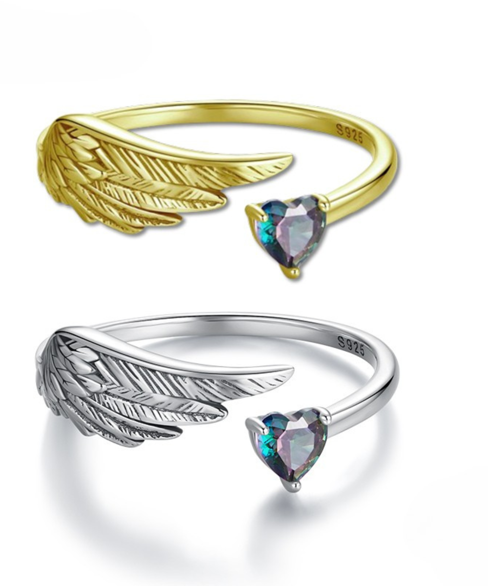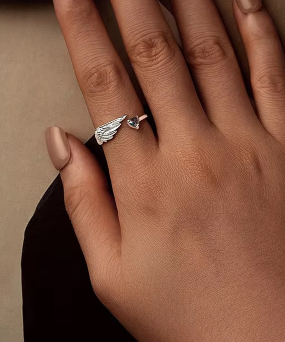 Este anel encantador une dois símbolos poderosos: a asa e o coração. Representando liberdade, cuidado e conexão emocional, ele é a escolha perfeita para quem busca uma joia com significado profundo e visual delicado. Seu design aberto traz leveza e um toque romântico com a pedra em formato de coração.
