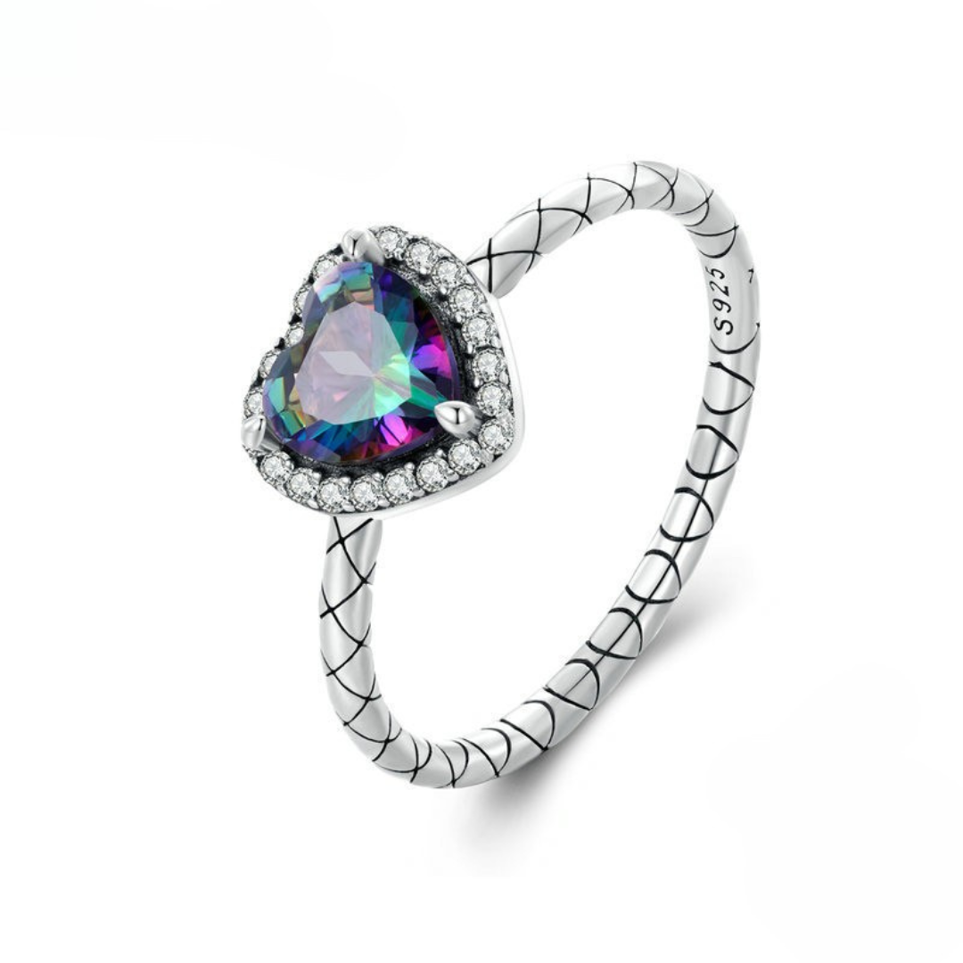 Anel Coração Multicolor Prata 925