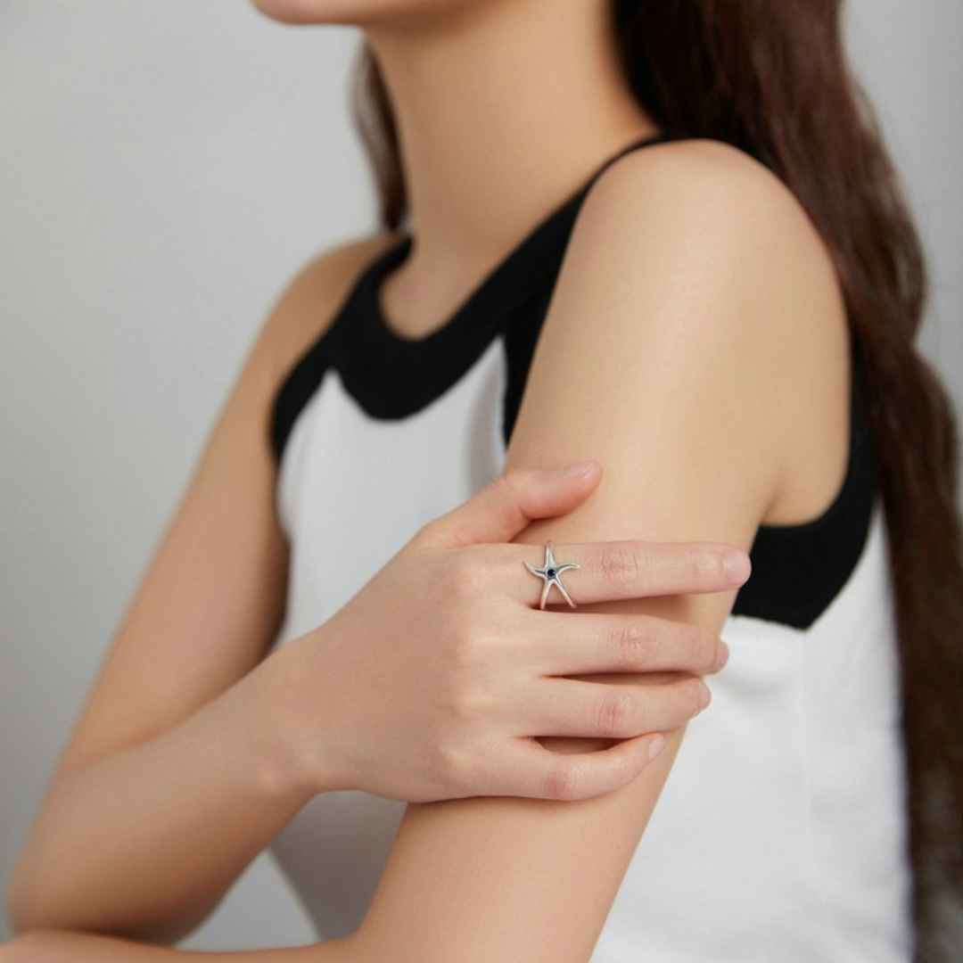🔹 Anel Estrela do Mar Prata 925 – Encanto do Oceano em Forma de Joia