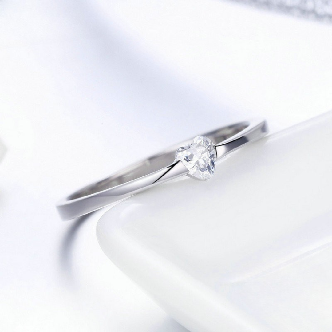 Anel Solitário Coração Prata 925