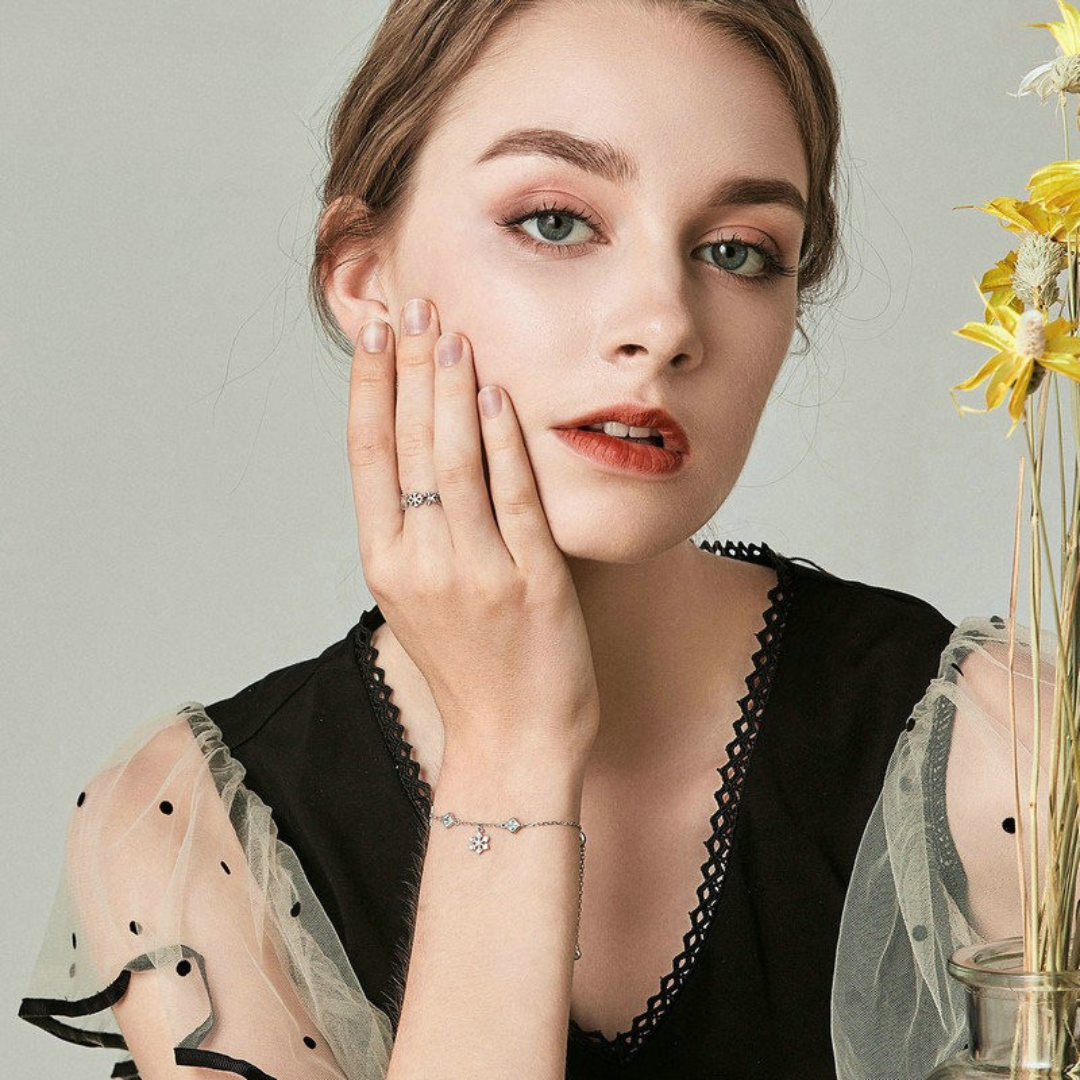 🔹 Pulseira Floco de Neve Prata 925 com Zircônia Azul – Brilho de Inverno com Elegância e Sofisticação
